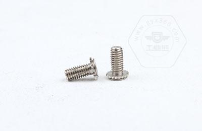 在使用過(guò)程中需在基體上開(kāi)一個(gè)小孔,將壓鉚螺釘放入孔內(nèi),采用鉚壓設(shè)備平行的均勻的在頭部平壓,因壓鉚螺釘?shù)念^部下有齒紋壓花,當(dāng)壓入后,基體在壓鉚螺釘?shù)闹車(chē)a(chǎn)生變形,和齒紋發(fā)生咬合現(xiàn)象,從而形成一個(gè)牢固的外螺紋。