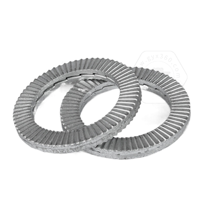• 產(chǎn)品描述:DIN25201SPS 雙疊自鎖墊圈,也叫碳鋼加大防松鎖緊墊圈、愜入式鎖緊墊圈、雙疊自鎖墊圈抗振防松動(dòng)墊圈、自動(dòng)鎖緊功能墊圈、安全鎖緊墊圈、雙層防松墊片、減震墊圈、對(duì)鎖墊圈、楔齒墊圈。DIN25201SPS 雙疊自鎖墊圈由二片不同斜紋墊圈組成,組裝時(shí)內(nèi)斜齒面相對(duì),外側(cè)放射狀齒面與兩端接觸面形成咬合狀態(tài),當(dāng)連接件受到振動(dòng)并產(chǎn)生螺栓松動(dòng)隱患時(shí),只允許兩個(gè)墊片內(nèi)側(cè)的斜齒相對(duì)錯(cuò)動(dòng),導(dǎo)致張力升高,從而防止松